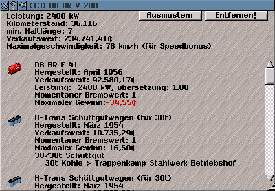 Mit Entfernen! kann der Fahrzeugverband sofort an dieser Position verkauft werden, ohne zuvor in ein Depot fahren zu müssen.