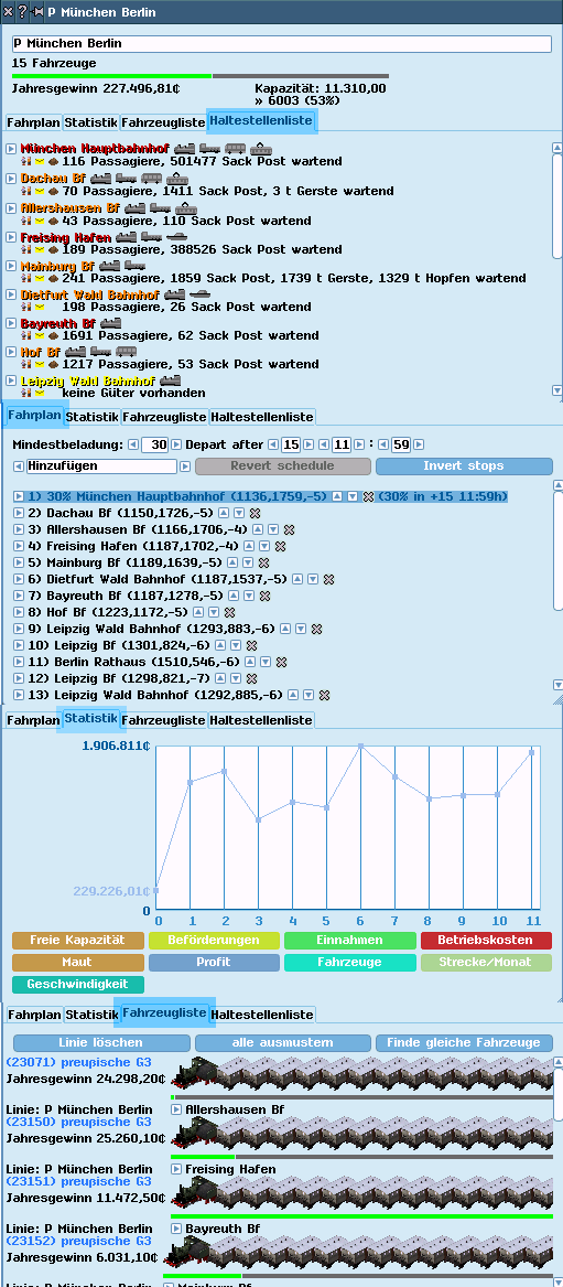 · Einnahmen: Die Erlöse aller Fahrzeugverbände dieser Linie.