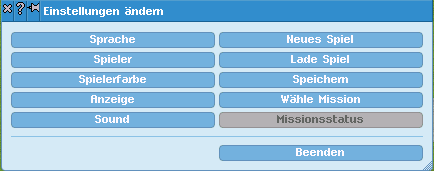 Wähle Mission: Öffnet das Auswahlfenster der vorhandenen Missionen.