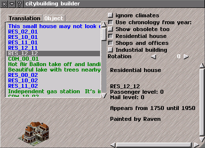 · Show obsolete: Expand the selection list to also contain buildings that are obsolete at the current Simutrans year.