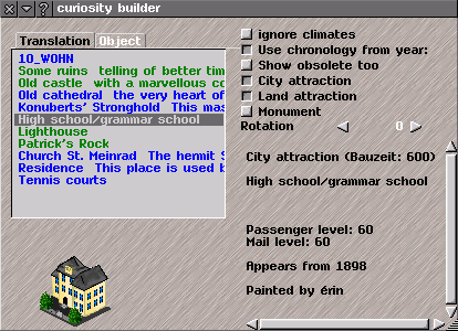 · Show obsolete too: Expand the selection list to also contain buildings that are obsolete the current Simutrans year.