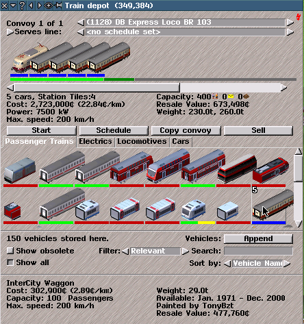 vehicle-unit-graphics: vehicle units are split into categories, which can be viewed by clicking on the index-tabs. Index-tabs divide vehicle-units into following groups: vehicle-units for passengers and mail, other powered (motorised) vehicle-units, and other trailers/carriages.