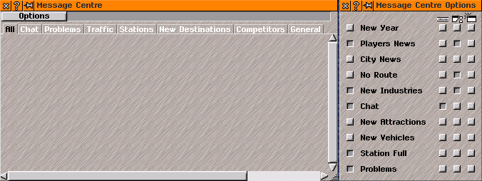 Message Centre lists messages from game and opens controls to select how messages are shown in game.