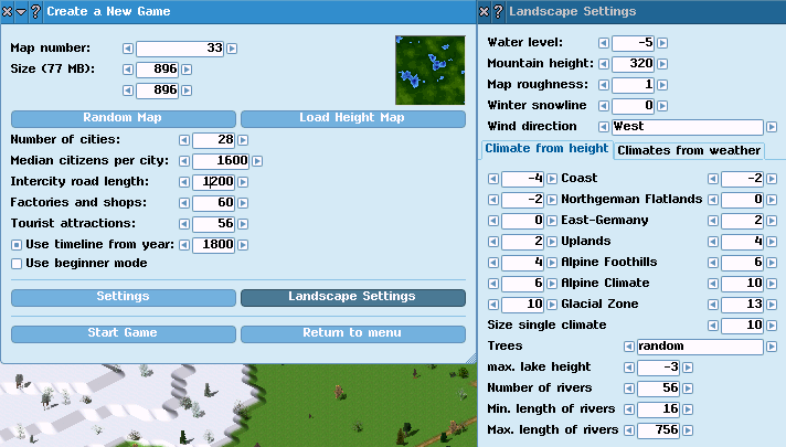 If you start your game with a new card, you should consider all climate zones, because many factories and some industrial chains are bound to certain landscapes. In addition, this is the only way to see the city buildings and sights adapted to the landscape.